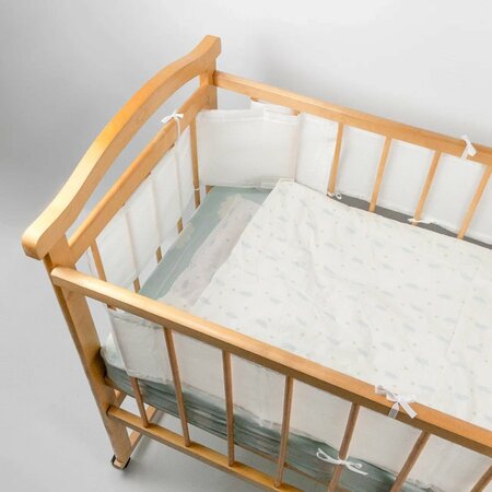 Комплект бортиков в кроватку - это комфортный сон и безопасность вашего малыша с рождения. Мягкие бортики - барьеры с подушечками и одеялом украсят детскую кроватку и надежно защитят ручки и ножки маленьких деток от случайных ударов и ушибов о кроватку, а также от сквозняков в зимний период и прохладной осенью. Детский принт абсолютно безопасен для младенцев, он будет привлекать внимание и фокусировать на себе взгляд малыша. Кроха не будет перегреваться и потеть во время сна, т. к. дышащий комплект в кроватку для новорожденного выполнен из натуральных гипоаллергенных материалов