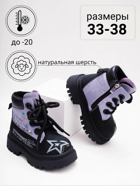 Длина стелек: р.33-21,5 см, р.34-22,5 см, р.35-23 см, р.36-23,5 см, р.37-24,5 см, р.38-25 см. Функциональные и уютные зимние ботинки для девочки от бренда Тотошка. Высокие кроссовки зимние для девочки выполнены из искусственной кожи, которая более устойчива к влаге, чем натуральная кожа, что делает сапоги зимние отличным выбором в холодное время года. Подкладка и стелька из натурального шерстяного меха создают комфорт при носке обуви. Шерсть обеспечивает хорошую циркуляцию воздуха и обладает отличной теплоизоляцией, что немаловажно для поддержания тепла в холодную погоду. Шнуровка и липучка позволяют создать индивидуальную посадку обуви, регулируя степень плотности, что делает кроссовки с мехом универсальными для любой стопы. Детские химние высокие берцы имеют подошву из термопластичной резины, которая не скользит и сохраняет свои свойства при различных температурах, что особенно важно для зимней обуви. Магазин Кифа предлагает также детские ботинки для девочек, зимние сапоги для девочки, дутики зимние.