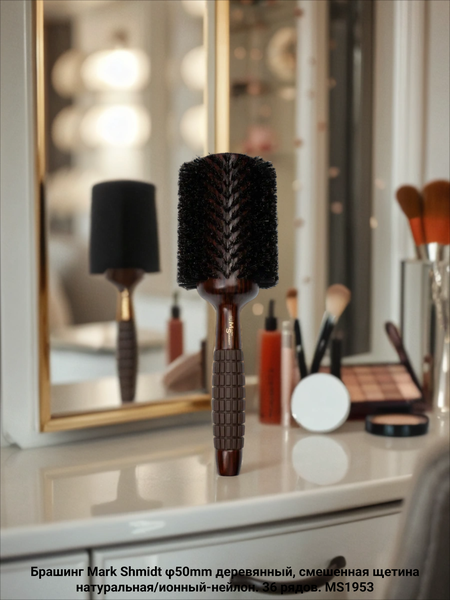 Устали от поисков идеальной щетки для волос? Мы знаем, что важно для вас — качество, удобство и стиль. Именно поэтому мы создали брашинг, который удовлетворит все ваши потребности! Прочная деревянная ручка с резиновым захватом с рисунком, выполненная из цельного куска дерева, создает неповторимые ощущения при укладке. Богатое покрытие из черного дерева с зернистостью говорит о высоком качестве и вкусе, представляя истинно классический выбор, который сохранится на века. Круглая щетка с твердой сердцевиной и со смешанной щетиной (кабан/ионный нейлон) в форме буквы «V» обеспечивает максимальное комфортное укладывание ваших волос. Независимо от вашего типа волос, эта щетка будет идеальным инструментом для создания прически, которая продержится долго и будет выглядеть на все 100%. Почувствуйте разницу с нашим брашингом — уникальное сочетание качества, стиля и комфорта! ДxШxВ: 28x11x11 мм Вес: 230 г