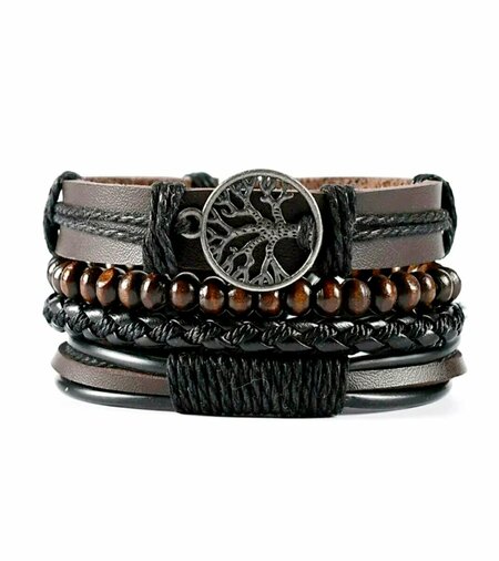 Браслет на завязках 4 в 1 унисекс, мужской, женский, для подростков "Древо Жизни" 19.5 - 32.5 см, сплав+экокожа. Цвет коричневый. Комплект браслетов на завязках 4 в 1 с символом Древо Жизни, все 4 браслета входящие в его состав коричневого и черного цвета, многослойный из качественной экокожи, мужской, состоит из 4 отдельных браслетов на завязках. Универсальный размер, подойдет на любое запястье, как мужчинам так и женщинам, детям и подросткам. Регулируется по длине от 18 до 32см. с помощью завязок.
