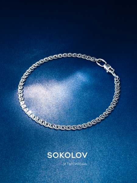 Ювелирный браслет женский на руку из серебра 925 пробы. Изящный браслет на руку плетения нона изготовлен из высококачественного материала, который придает ему блеск и привлекательность. Удобный замок надёжно фиксирует браслет на руке даже при ежедневной носке. Браслеты женские SOKOLOV- это настоящее произведение искусства, изысканный и элегантный аксессуар, который подчеркнет вашу женственность и стиль. Серебряный браслет идеально подходит маме, девушке или женщине любого возраста и будет уместен как подарок на любой праздник, такой как День Рождения, 8 Марта, Новый год, 14 февраля или любой другой особый день. Вес товара, указанного в карточке, является средним и может отличаться от фактического. Значение веса на фото и в характеристиках являются примерными и могут отличаться от фактического. Чтобы украшение радовало Вас своей красотой бесконечно долго, рекомендуем избегать попадания на него агрессивных химических и парфюмированных средств. Гарантийный срок для ювелирных изделий составляет 6 (шесть) календарных месяцев, и исчисляется со дня передачи изделия потребителю.