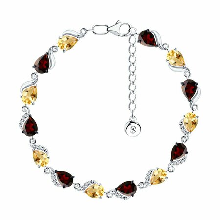 Серебряный браслет женский 925 пробы с камнями фианитами, гранатами и цитринами это изысканное украшение станет прекрасным дополнением к вашему образу и подарком в любой особенный день. Серебро 925 пробы и уникальное плетение придают браслету элегантность и изысканность. Серебристый браслет прекрасно сочетается с другими ювелирными украшениями и станет ярким акцентом на вашей руке. Украшения Соколов это лучший способ выразить свою индивидуальность и подчеркнуть свою красоту, браслет выполнен из серебра 925 пробы высокого качества, что придает ему особый блеск и привлекательность. Ювелирные изделия SOKOLOV - это самые модные и стильные украшения, которые подчеркнут вашу утонченность и неповторимость. Создайте свою коллекцию серебряных украшений и дополните ее этим прекрасным браслетом. Браслет серебряный женский 925 пробы это превосходный выбор для любой женщины, которая ценит элегантность и стиль в каждой детали. Он станет стильным дополнением к вашему гардеробу и подчеркнет ваш неповторимый стиль. Украшения комплектуются с подарочной упаковкой, и идеально подходят для подарка любимой женщине и девушке, девочке на день рождения, 8 марта, день всех влюбленных или любой другой повод. Вес товара, указанного в карточке, является средним и может отличаться от фактического. Значение веса на фото и в характеристиках являются примерными и могут отличаться от фактического. Чтобы украшение радовало Вас своей красотой бесконечно долго, рекомендуем избегать попадания на него агрессивных химических средств. Гарантийный срок для ювелирных изделий составляет 6 календарных месяцев, и исчисляется со дня передачи изделия потребителю.