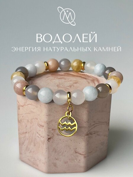 Браслет для Водолея женский на руку станет идеальным подарком для любой женщины. Браслет создан из натуральных камней высокого качества, которые подобраны астрологом специально для знака Водолей. Каждый камень отобран в ручную и проверен на качество. Аксессуар собран на очень качественную корейскую силиконовую нить, благодаря чему, он хорошо растягивается, его удобно надевать и снимать. Фурнитура из нержавеющей стали с позолотой долговечна и гипоаллергенна. Такой браслет подарит вам не только эстетическое удовольствие, но и даст энергетическую поддержку от природных камней. Его можно носить ежедневно. Органично вписываясь в любые стили одежды, он станет отличным выбором как для делового, так и для праздничного наряда. Браслет легко комбинируется с другими украшениями, что позволяет создавать уникальные образы, отражающие ваш стиль. В комплект к браслету, мы добавили качественную подарочную упаковку в виде бархатного мешочка, карточку с описанием свойств камней и рекомендациями по уходу, салфетку для чистки и запасные нить и камень. В мастерской OM Gemstone Workshop мы создаем украшения талисманы с любовью к натуральным камням и вниманием к деталям уже более 7 лет.