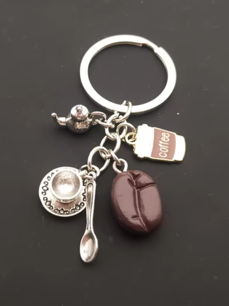 Брелок для ключей металлический Чайник Чашка Кофейное зернышко. Для любителей кофе, чая и теплой домашней обстановки. Хороший подарок маме, бабушке, сестре, любимой.