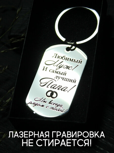 Брелок из нержавеющей стали с глубокой лазерной гравировкой (не маркировка, а именно гравировка) от HOLSTART- это отличный подарок любимому человеку на день рождения, свадьбу, юбилей или просто так - без повода. Тёплые, душевные надписи никого не оставят равнодушными, это очень ценный, и в то же время недорогой подарок. Брелок для ключей с гравировкой имеет размер 50х28 мм, толщина 1.5 мм. Металлический жетон с гравировкой мужской имеет гладкую зеркальную поверхность, устойчивую к царапинам. Брелок с гравировкой за счет своего стильного, локаничного дизайна будет отличным подарком любимому человеку, мужу, мужчине, ребёнку, брату, папе. Металлический брелок с гравировкой упакован как ювелирное изделие -в красивую чёрную коробочку. Брелок из нержавеющей стали с лазерной гравировкой- это подарок на века, надпись не стирается, это уникальный подарок, который долго будет радовать и дарить теплые эмоции своему дарителю. Жетон с гравировкой от HOLSTART. Подарочный набор мужской, женский.