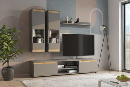 BRUNO стенка в гостиную, гостиная, Серый графит / Дуб Вотан, 175 x 196 x 37 см (ШхВхГ)