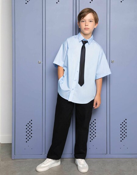 Брюки из 100% хлопкового твила. Материал с мягкой фактурой отлично пропускает воздух и приятно ощущается на коже. Мы тщательно разрабатывали дизайн, чтобы подарить свободу твоим движениям и сохранить аккуратный внешний вид. Эта классическая модель с защипами добавляет акцент школьному образу и сочетается с любым верхом. Детали: свободный силуэт Easy fit, застёжка на пуговицу и молнию, шлёвки для ремня, защипы, прорезные карманы. Гарантийный срок товара 30 дней.