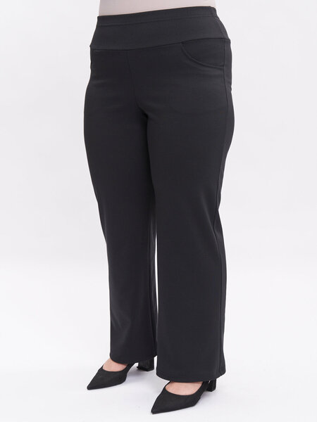 Женские брюки большого размера плюс сайз. Демисезонные брюки из плотного трикотажа в классическом черном цвете. Высокая посадка и комфортный эластичный пояс на резинке обеспечивают идеальную посадку на полную фигуру. Модель декорирована кокеткой спереди и сзади, что делает бедра округлыми и женственными. Спереди расположены подкройные карманы, добавляющие функциональность. Плотный материал хорошо держит форму, не деформируется и обладает легким утягивающим эффектом. Брюки свободного прямого кроя станут отличным выбором для женщин с пышной фигурой. Универсальный дизайн и цвет подходят для повседневного использования, для офисного дресс-кода, деловых встреч или вечернего образа. Так же они идеально подходят для учителей и преподавателей, для которых важен классический стиль в одежде. Эти стильные и удобные брюки станут отличным дополнением к вашему гардеробу! Они отлично сочетаются как с базовыми вещами, так и с более формальной одеждой. Вы будете выглядеть элегантно и чувствовать себя комфортно в любой ситуации.