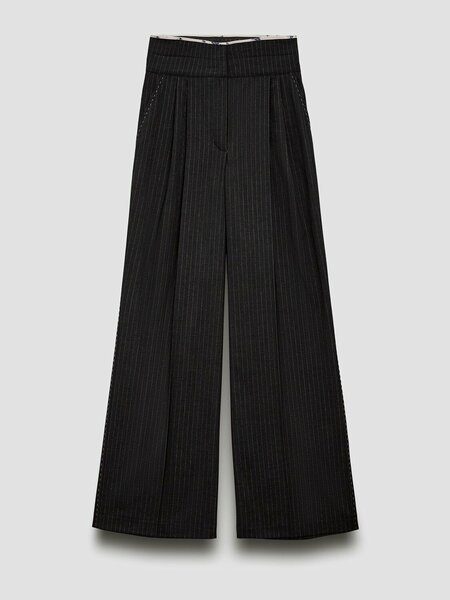 Брюки 4FORMS прямые В полоску С декоративной отделкой ПО поясу, серый. Костюмные женские брюки в полоску с декоративной отделкой по поясу. Мягкая приятная к телу ткань с содержанием вискозы. Расслабленный крой с комфортной посадкой талии и вытачками. Удобная свободная модель для расслабленных повседневных, так и классических образов. В коллекции представлен жакет в тон.