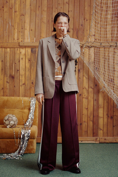 Обращаем ваше внимание: Женские брюки с белыми лампасами могут иметь брак: лампасы могут содержать желтые пятна или окрашиваться в цвет изделия. Приносим извинения за доставленные неудобства! - Широкие женские брюки из легкой ткани с гладкой трикотажной фактурой - Классическая средняя посадка выгодно подчеркивает фигуру и акцентирует внимание на талии. Широкий эластичный пояс-резинка без завязок. Два боковых кармана с отрезным бочком. Длинные широкие штанины с декоративными боковыми лампасами - Брюки с лампасами из новой осенней коллекции. Трикотажные широкие брюки подойдут для привлекательных и женственных аутфитов в офис, на учебу и просто на каждый день. Дополни их олимпийкой из комплекта или своим любимым верхом для расслабленных повседневных луков в трендовом стиле спорт-шик. Благодаря удлиненным штанинам широкие брюки подойдут также для высоких девушек. Создавай образы в стиле спорт-шик или кэжуал, носи брюки дома, чтобы оставаться стильной в любой ситуации - Размер на модели: S