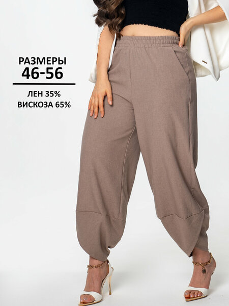 Брюки летние женские больших размеров из летней вискозной ткани, с длиною по шаговому шву 69см. Гигроскопичность материала обеспечивает удобство и комфорт в теплое время года. Брюки бананы женские летние хорошо сидят и не стесняют движений, не мнутся, не закатываются и не деформируются после стирки. Женские брюки на резинке могут подойти на работу, учебу, для поездок и сидячей работы. Мягкий пояс не сдавливает, поэтому подобный крой обеспечивает максимальный комфорт. Шаровары женские станут для Вас идеальным дополнением базового гардероба. Штаны бананы и прекрасно комбинируется с кроссовками, кедами, классическими лодочками или босоножками. Брюки широкие женские на резинке с оригинальными манжетами вытягивают силуэт, подчеркивают красоту ног. Стильные брюки оверсайз цвет капучино, коричневый брюки могут подойти для женщин и девушек, а так же для девочек подростков. Штаны летние женские шаровары легко комбинируются с блузкой, рубашкой или туникой. Брюки бананы женские можно надеть на праздник, на вечеринку или прогулку. Брюки женские свободного кроя на весну и на лето удобны в носке, не сковывают движений. С футболкой или топом брюки алладины могут станут прекрасным решением на любое мероприятие. Женские брюки больших размеров позволят подобрать штаны для полных женщин с любой фигурой. Модель "Виктория".