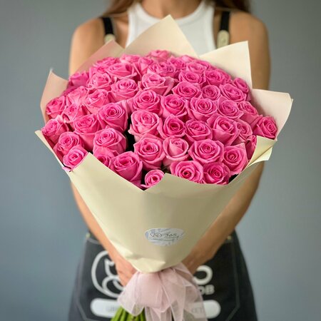 Букет из 101 розовой розы 40 см, красивая упаковка, лента