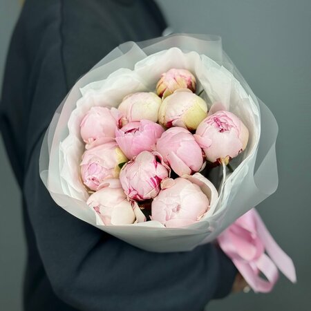 Букет из 11 пионов Сара, красивая упаковка, лента