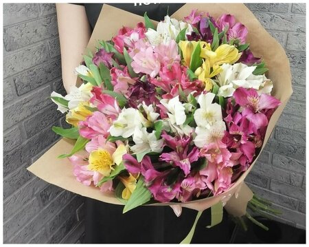Букет из 15 живых ярких разноцветных альстромерий купить с доставкой от Bestflo
