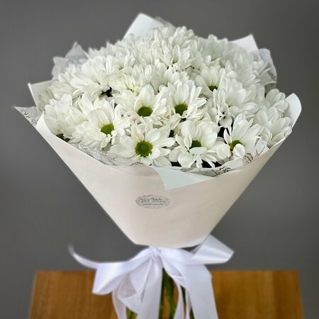 Букет из белых кустовых хризантем станет отличным подарком и поднимет настроение! Так же это отличная альтернатива всеми любимым ромашкам. Количество цветов в этом букете вы можете выбрать под ваш бюджет и повод!