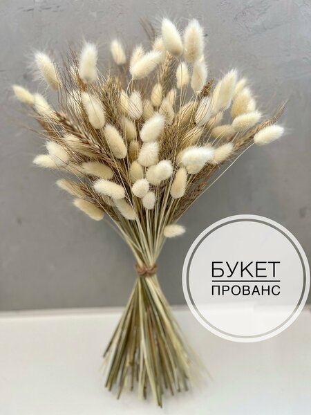 Стильный и интерьерный букет из сухоцветов (Состав: рожь, лагурус) Мягкие пушистые веточки лагуруса и сухоцвет рожь гармонично смотрятся и сочетаются друг с другом за счет светлых оттенков и разной фактуры . Благодаря светлому оттенку хорошо впишется в любое домашнее или офисное пространство , салон красоты . Является отличным украшением любого пространства , а главное органично впишется и создаст особую атмосферу . Также может оказаться отличным решением для оригинального подарка. В букете от 80 -90 колосьев . Высота 45см Долговечность сухоцвета позволит вам длительное время наслаждаться прекрасной картиной, радующей глаз. Букет будет обёрнут в плотный крафт и доставлен в специальной упаковке, что обеспечит целостность товара .