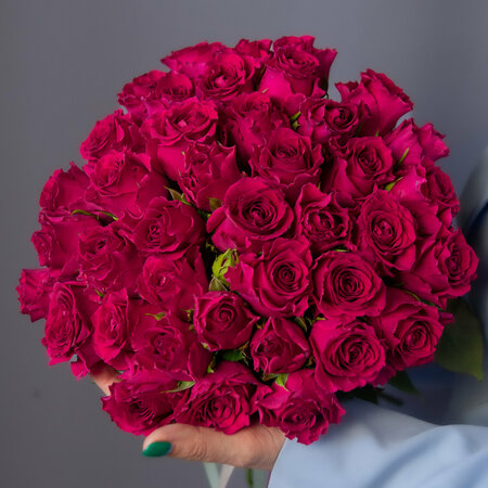 Букет из роз цвета фуксия – яркий акцент вашего праздника Подарите близким незабываемые эмоции с букетом из роз насыщенного цвета фуксия. Эти яркие и сочные цветы станут идеальным украшением любого торжества, будь то день рождения, юбилей или романтический вечер. Розы цвета фуксия привлекают внимание своей глубиной и насыщенностью, создавая атмосферу праздника и радости. Насыщенный цвет фуксия подчеркивает индивидуальность и добавляет изюминку любому событию. - Долговечность: Благодаря свежести и качеству, букет будет радовать глаз долгое время. - Универсальность: Идеально подходит для свадеб, юбилеев, дней рождения или просто как знак внимания. - Быстрая доставка: Мы понимаем, как важно получить цветы вовремя. Благодаря быстрой доставке от Яндекс маркета, букет будет у вас максимально быстро. Размер бутона: 3-4 см Длина стебля: 40 см Цветок не крупный, но плотный и насыщенного цвета. На фотографии букет из 39 роз.