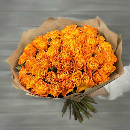 Букет живых цветов из 51 оранжевой розы 40см в крафте