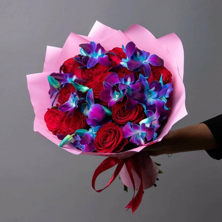 В составе букета "Вечное сияние", роза "Родос", фиолетово-голубой дендробиум, дополнен листьями фисташки. Этот необычный букет отлично подойдет для следущих поводов: *День рождение - яркий и оригинальный букет произведет впечатление на именинника *Годовщина свадьбы - символизирует уникальность отношений и вечную любовь. Закажите букет с доставкой или заберите самовывозом. И помните, что цветы - это просто. К сожалению, мы не можем гарантировать точную копию букета. Наши цветы могут отличаться от указанных на фотографии, ведь они приезжают к нам из разных уголков мира. В свою очередь, мы гарантируем соблюдение стиля и основного состава букета, в этом можете быть уверенными.