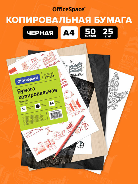Копировальная бумага OfficeSpace формата А4 предназначена для рукописных работ и пишущих машинок. В папке представлено 50 листов. Цвет бумаги – чёрный. Папка выполнена из плотного картона. Копировальная бумага поможет быстро получить второй экземпляр документов строгой отчётности при ручном заполнении бланков, заявлений, накладных. С помощью копировальной бумаги (копирки) OfficeSpace можно перенести изображение на бумагу при рисовании или создать копии документов при письме карандашом или шариковой ручкой, печати на пишущей машинке или матричном принтере.