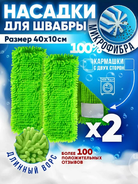 Насадки продаются набором 2 штуки в 1 упаковке. Размер 40х10 это размер держателя швабры для насадки, то есть это внутренние размеры мопа. Внешние размеры мопа - 45 х 15 см.
