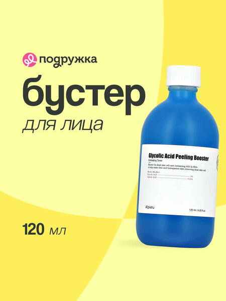 Бустер для лица A`PIEU GLYCOLIC c AHA- и BHA-кислотами и гликолевой кислотой эффективно отшелушивает ороговевшие клетки и стимулирует процессы регенерации, возвращая коже сияние и гладкость. Каждое применение бустера — это шаг к более ровной, упругой и эластичной коже. Помогает уменьшить гиперпигментацию. Нормализует деятельность сальных желез. Березовый сок в формуле увлажняет, очищает и улучшает состояние проблемной и сухой кожи. Состав: Water, Betula Alba Juice, Propanediol, Dipropylene Glycol, Alcohol Denat, Glycolic Acid, 1,2-Hexanediol, Sodium Citrate, Niacinamide, Butylene Glycol, Glycerin, Salicylic Acid, Artemisia Princeps Leaf Extract, Xanthan Gum, PEG-60 Hydrogenated Castor Oil, Betaine, Hydroxyethylcellulose, Ethylhexylglycerin, Adenosine, Fragrance, Disodium EDTA, Sodium Hyaluronate, Panthenol, Lactobacillus/Pumpkin Ferment Extract, Gaultheria Procumbens (Wintergreen) Leaf Extract, Alchemilla Vulgaris Extract, Arnica Montana Flower Extract, Actinidia Chinensis (Kiwi) Fruit Extract, Ananas Sativus (Pineapple) Fruit Extract, Pantolactone, Pyrus Malus (Apple) Fruit Extract. Способ применения: Использовать как первый шаг в уходе за кожей. Нанести достаточное количество средства на ватный диск или на руки, легкими движениями распределить по лицу, помассировать для лучшего впитывания. Перед выходом на улицу обязательно нанести солнцезащитный крем после использования бустера. Рекомендуется использовать один раз в день или 3-5 раз в неделю в зависимости от типа кожи. Только для наружного применения. Хранить в недоступных для детей местах. В случае появления раздражения немедленно прекратить использование. Хранить при температуре от +5 °С до +25 °С.