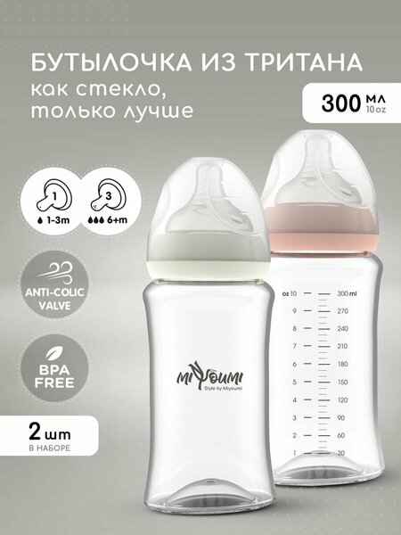 Бутылочка для кормления - это незаменимый аксессуар для малышей. Она представляет собой детскую бутылочку, специально разработанную для кормления новорожденных. Бутылочка обладает антиколиковыми свойствами, что делает ее идеальным выбором для вашего малыша. Она предназначена для детей с 6-9 + месяцев, исключительно для комфортного питания малыша. Бутылочка имеет удобную форму и размеры, чтобы ребенку было легко ее держать. Она изготовлена из иновационного материала тритан, которые абсолютно безопасны и не содержат вредных веществ. Благодаря этому питание вашего ребенка будет всегда безопасным и гигиеническим. Набор бутылочек в количестве 2 шт, чтобы удовлетворить все потребности малыша. Вы сможете использовать каждую из них в зависимости от ситуации. Это удобно и экономично, так как вам не придется искать и покупать отдельные для каждой потребности вашего малыша. Так же соски подходят для бутылочек Philips Avent. Антиколиковая бутылочка - специальная система которая позволяет предотвратить возникновение колик у ребенка. Благодаря этому ваш малыш будет чувствовать себя комфортно и спокойно после каждого приема пищи. Они идеально подходят для кормления малыша и обеспечивают ему всю необходимую питательность. Бутылочки из тритана легко моются и подходят для стерилизации, что делает их еще более удобными в использовании. Приобретая товары для малышей Miyoumi, вы делаете правильный выбор в пользу здоровья и комфорта вашего малыша. Инструкция по уходу : 1. Нельзя разогревать бутылочку из тритана выше 100 градусов 2. Стерилизация только кипятком не более 1 мин 3. Стерилизация в микроволновке запрещена 4. В стерилизаторе не выше 100 и не больше 1мин.