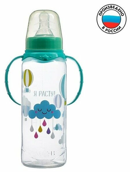 Бутылочка для кормления "Нежное облачко"250 мл цилиндр, с ручками, цвет бирюзовый
