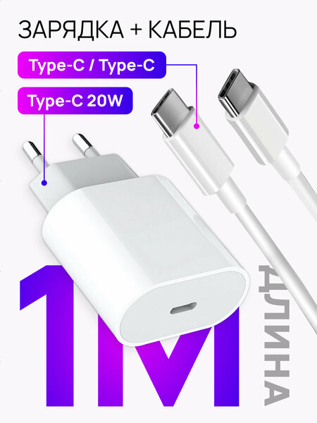 Набор для быстрой зарядки включает блок питания USB-C 20W и шнур Type-C — Type-C (1 м) . Подойдет для быстрой зарядки iPhone 15, 16 , Samsung Galaxy , Xiaomi , Huawei и другими устройствами с поддержкой технологии Power Delivery (PD). Заряжайте смартфоны, планшеты и аксессуары с максимальной скоростью.