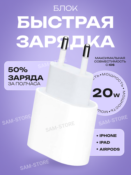 Быстрая зарядка для iphone. Эффективное технологическое решение данного устройства позволяет зарядить аккумуляторную батарею телефона до 50 % уровня заряда всего за полчаса. Параметры выходного тока и входного напряжения, а также наличие адаптированного функционала, которым обладает данная зарядка для iPhone, позволяют ей успешно функционировать не только как зарядка для iphone 12,13. С помощью данного адаптера можно быстро и без проблем заряжать такие устройства, как iPhone SE, iPhone XR, iPhone 11, iPhone 12 и 13 Pro, а также большую часть моделей iPad. Так же совместим и с устройствами на Android (Samsung; Xiaomi; Huawei; Redmi с Type-C. Зарядное устройство оснащён портом USB Type-C, в который нужно будет подключить провод с соответствующим разъёмом. зарядное устройство адаптер / адаптер USB / зарядка для айфона / зарядка для apple / зарядное устройство для телефона / адаптер для телефона / адаптер питания / Сетевое зарядное устройство apple / блок питания для айфона.