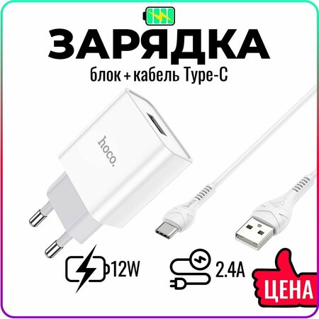 ✅ Быстрая зарядка для телефона с кабелем Type-C в комплекте / для смартфонов Android / сетевое зарядное устройство / адаптер питания / hoco. C81A незаменим для зарядки различных типов устройств. Зарядка поставляется с кабелем в комплекте со штекером type-C позволяющим зарядить мобильные устройства: планшетные компьютеры, мобильные телефоны, смартфоны, навигаторы, регистраторы, радар-детекторы, MP3, PMP, PDA, цифровые фотокамеры, электронные книги, геймпады(джойстики), пауэрбанки, блютуз колонки, гарнитуры, медиаплееры и другие устройства. Зарядкой можно пользоваться дома, в путешествии, на работе и в пути, он компактный и практичный, быстро зарядит ваши мобильные устройства. Обращаем ваше внимание, что на зарядное устройство распространяется ГАРАНТИЯ 12 месяцев ✅ Характеристики: 1. Вход: AC100-240V, 50/60Hz, 0.4A. 2. Выход: USB: 5V-2.1A 3. EU штекер. 4. Один USB выход, огнеупорный материал PC 5. Размеры: 8.3 х 4.2 х 2.5 см. 6. Набор с зарядным кабелем X37 для Type-C устройств, длина кабеля: 1 м. ✅Комплектация: Сетевое зарядное устройство Hoco C81A, 1USB, 2.1A+кабель Type-C 1м, цвет белый - 1шт.