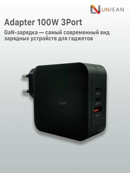 Зарядка для телефона UNIEAN GaN 100W с 2 разъемами USB-C и 1 разъемом USB-A - это инновационное решение для быстрой зарядки всех ваших мобильных гаджетов, включая смартфоны от Apple и устройства на платформе Android. С мощностью 100 Вт это зарядное устройство обеспечивает эффективное питание ваших устройств. Позволяет заряжать почти любой смартфон или ноутбук Xiaomi на максимальной скорости. Для каждого конкретного смартфона Xiaomi блок будет подбирать корректную мощность, так что о перегреве или вреде для батареи можно не волноваться. Три порта позволяют одновременно заряжать до трех устройств, делая его идеальным для повседневного использования. Встроенная защита от перегрева и перенапряжения обеспечивает безопасность использования. Чёрный корпус с тремя разъемами делает его удобным и стильным аксессуаром. Благодаря технологии GaN это зарядное устройство обеспечивает высокую скорость зарядки при низкой температуре, что делает его безопасным и надежным в эксплуатации. Совместимость с широким спектром смартфонов различных брендов делает его идеальным выбором для всех ваших устройств. Обеспечьте себе надежное и эффективное зарядное устройство для полной зарядки ваших гаджетов с UNIEAN 100W GaN. Подходит для Apple iPhone, iPad и MacBook, а также большинства смартфонов Pixel, Xiaomi, Samsung и Asus