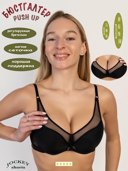 Уважаемые покупатели, обратите внимание! Бюстгальтеры маломерят на один обхват. То есть, если у вас размер 80B- заказываете 85B, если 75B-заказываете 80B и так далее. Бюстгальтер c чашечками push up, красиво огибают грудь и аккуратно собирают ее внутрь. Бюстгальтер очень удобный, с регулируемыми бретелями, что позволяет носить его так, как вам удобно. Застежка 2 крючка на 4 позиции гарантирует хорошую поддержку. Данная модель нижнего белья выполнена из качественного материала. Разбавить классический стиль помогут дизайнерские вырезы с мягкой сеточкой. Вы можете надевать этот бюстгальтер в офис, на учебу или на прогулку. Нижнее белье представлено в классическом цвете.