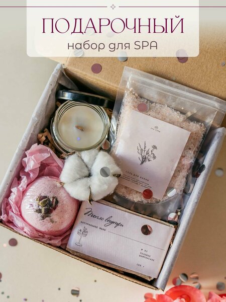 Подарочный набор для женщин от бренда Тепло внутри – это косметика которая с любовью и вниманием к каждой мелочи собрана в красивый нежный подарок. Подарочный набор косметики, содержит: Соль для ванн с лепестками розы 150 гр, мыло ручной работы 100 гр, бомбочка для ванн с розой 1 шт, свеча соевая в баночке 50 мл, бутон хлопка, открытка 1 шт. Чувство предвкушения, от того что вы разворачиваете красиво упакованный подарок, живет в нас самого детства. И благодаря нашему набору вы можете дарить своим близким эти эмоции. Это самый лучший подарок маме или подарок сестре который заставит их вспомнить детские эмоции беззаботной радости. К сожалению, мы иногда забываем о не менее, а иногда и более близких людях, подарок бабушке или подарок подруге на др помогут забыть возможные обиды и напомнить о счастливых моментах радости, проведенных вместе. Подарок может выражать любовь и заботу, которую можно выразить через подарочные наборы косметики для спа процедур. Подарки коллегам могут быть не скучной галочкой в перечне дел, а может стать запоминающимся событием, которое сплотит коллектив. Подарок коллеге или деловому партнеру не даст ему забыть о вас. Наш подарочный набор уходовой косметики отлично подойдет как подарок учителю или подарок воспитателю. Подарочный набор учителю это благодарность за его труд и заботу о ваших детях, наши наборы собраны так что одариваемый не сможет остаться равнодушным. Подарок для учителя — это неоценимый знак внимания, который напомнит ему какими заботливыми могут быть ваши ангелочки. Подарок женщине на день рождения - это важный знак внимания, наши милые подарки тронут сердце любой женщине. Если вы хотите сделать более существенный подарок девушке, то наш подарочный бокс для девушки косметика станет отличным дополнением, от которого невозможно остаться равнодушным. Подарочный набор бьюти бокс представляет собой идеальное сочетание изысканных косметических продуктов, созданных для полного расслабления и ухода за вашей кожей. Спа наборы подарочные от бренда Тепло внутри откроют мгновенное ощущение благополучия и уюта, подарочный набор спа обладает первоначальным ароматом, который расслабляет нервную систему, а завершающие ароматы создадут уютную атмосферу. Подарочный бьюти бокс включают в себя самые передовые средства по уходу за кожей, нежные формулы увлажняют кожу, оставляя ее гладкой и шелковистой. Бьюти бокс подарочный сделает вечернюю ванну не забываемой. Подарочный косметический набор станет прекрасным подарком для любого человека, кто ценит качество ухода за собой и стремится к гармонии тела и души. Бьюти набор подарочный погрузит одариваемого в уютную атмосферу спа салона. Подарочные наборы для женщин, милые и с любовью упакованные — это наша специализация. Вам больше не нужно думать, долго выбирать подарок жене на день рождения или подарок сестре на день рождения, вы все легко найдете у нас. Подарок для девушки или подарок для подруги — это больше не проблема. Подарочный набор маме или подарок для женщины станет запоминающимся моментом, ведь наши наборы сделаны так, чтобы одариваемый получил эстетическое удовольствие. Box подарочный набор для девушки с уходовой косметикой это отличный подарочный набор для мамы или подарок для бабушки. Позвольте вашим родным насладиться спа процедурами б