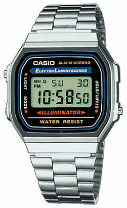 Мужские наручные часы Casio A-168WA-1Y , элемент питания в виде батарейки приводит их в действие. Корпус пластиковый с электронным циферблатом и пластиковым стеклом, браслет стальной. Модель Casio A-168WA-1Y обладает степенью влагостойкости 30 м (3 АТМ), где возможно мыть руки и пройти под легким дождем, для плавания рассмотрите модели с влагостойкостью от 100 м (10 АТМ). Циферблат подсвечивается электролюмисцентной подстветкой, позволяющей видеть время в темноте. МодельCasio A-168WA-1YПолМужскиеМеханизмКварцевыйКорпусПластикБраслетНержавеющая стальПодсветкаЛюминесцентная, ЭлектролюминисцентнаяВодозащита30 мСтеклоОрганическоеКалендарьЕсть, числоРазмер38.6х36.3х9.6 ммСтильклассическийГарантийный срок2 годаКомплектациячасы, фирменная коробка, гарантийный талон (паспорт), инструкцияСтранаЯпония Мужские наручные часы Casio A-168WA-1Y , элемент питания в виде батарейки приводит их в действие. Корпус пластиковый с электронным циферблатом и пластиковым стеклом, браслет стальной. Модель Casio A-168WA-1Y обладает степенью влагостойкости 30 м (3 АТМ), где возможно мыть руки и пройти под легким дождем, для плавания рассмотрите модели с влагостойкостью от 100 м (10 АТМ). Циферблат подсвечивается электролюмисцентной подстветкой, позволяющей видеть время в темноте. Модель: Casio A-168WA-1Y Пол: Мужские Механизм: Кварцевый Корпус: Пластик Браслет: Нержавеющая сталь Подсветка: Люминесцентная, Электролюминисцентная Водозащита: 30 м Стекло: Органическое Календарь: Есть, число Размер: 38.6х36.3х9.6 мм Стиль: классический Гарантийный срок: 2 года Комплектация: часы, фирменная коробка, гарантийный талон (паспорт), инструкция Страна: Япония