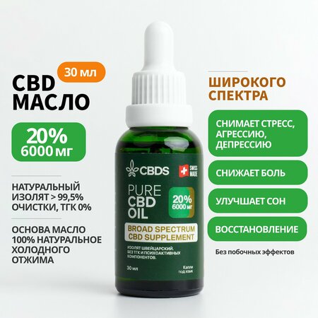 Экстракт CBD + CBG + CBDV и другие природные терпены. CBD Масло 20% широкого спектра 30 ml, 6000 мг. CBD Масло Широкого спектра и Масло МСТ. Это идеальный продукт для широкого спектра недугов, позволяет бороться и эффективно помогает. Также весьма полезен спортсменам после тренировок. Изолят CBD из соцветий 100% органической конопли, очищен от вредных примесей и психостимулирующих веществ. (>99,5% степени очистки). Не содержит ТНС (ТГК 0%). Обычно употребляют для: - Избавления от Мигреней и других типов головной боли - Улучшения качества сна - Облегчения при хронических болях - Уменьшения тревоги и депрессии - Снятия стресса и беспокойства - Уменьшения воспалений - При шизофрении - От перепадов настроения - При тошноте и климактерических симптомах - Для снижения веса - Для улучшения здоровья сердца - Для улучшения состояния кожи - Для восстановления после тренировок - При птср — посттравматическое стрессовое расстройство Врачи прописывают от сдвг, Эпилептикам, а также больным Альцгеймером разных степеней тяжести.