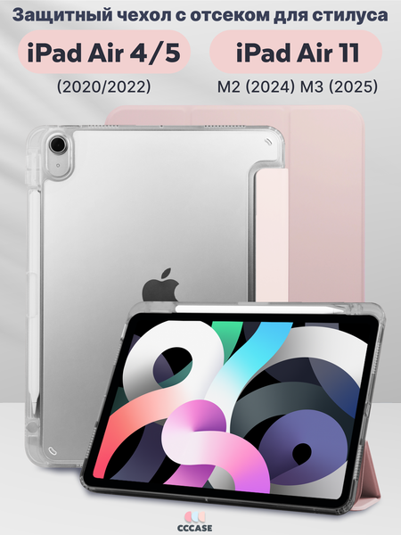 Чехол книжка для Apple iPad Air 4 10.9 (2020) / Apple iPad Air 5 10.9 (2022) / Apple iPad Air 11 M2 (2024) / Apple iPad Air 11 M3 (2025) / Чехол для Айпад Эйр 4 (2020) / Чехол для Айпад Эйр 5 (2022) / Чехол для Айпад Эйр 11 М2 (2024) / Чехол для Айпад Эйр 11 М3 (2025). Силиконовый чехол CCCASE это стильное дополнение к вашему iPad Air 11 M3 (2025) / iPad Air 11 M2 (2024) / iPad Air 4 10.9 (2020) / iPad Air 5 10.9 (2022). Чехол плотно устанавливается на планшет и защищает его от нежелательных внешних воздействий. Полностью закрытые кнопки не пылятся и остаются чистыми на протяжении всего времени работы с iPad. Порт зарядки и выход наушников открыты, что позволяет использовать любые варианты кабелей с разнообразными штекерами. А перфорация, совпадающая с динамиком, даёт возможность наслаждаться чистым и прямым звуком. Классический вид крышки подставки позволит использовать чехол как в режиме набора клавиатуры, в котором также удобно читать, так и в режиме FaceTime, для общения в мессенджере или для просмотра фильмов. Крышка обеспечивает включение экрана при ее открытии, а когда вы закрываете крышку ваш iPad Air 11 M3 (2025) / iPad Air 11 M2 (2024) / iPad Air 4 10.9 (2020) / iPad Air 5 10.9 (2022) автоматически уходит в спящий режим. Для активации функции автоматической разблокировки/блокировки экрана Вашего iPad при открытии/закрытии крышки чехла нужно сделать следующие действия: 1️⃣ Настройки 2️⃣ Экран и яркость 3️⃣ Блокировка и разблокировка. 4️⃣ Тумблер переключения должен располагаться справа ✅ (Если данную функцию потребуется отключить, то тумблер переключения должен располагаться слева) Список совместимых устройств и модели iPad: • Apple iPad Air 4 10.9 (2020 года) • Apple iPad Air 5 10.9 (2022 года) • Apple iPad Air 11 M2 (2024 года) • Apple iPad Air 11 M3 (2025 года) Модели совместимых планшетов iPad: ◦ А2316, А2324, А2325, А2072 на Apple iPad Air 4 10.9 (2020);* ◦ A2588, A2589, А2591 на Apple iPad Air 5 10.9 (2021);* ◦ A3266, A3267, A3270 на Apple iPad Air 11 дюймов (M2) 2024;* ◦ A2902, A2903, A2904 на Apple iPad Air 11 дюймов (M3) 2025;* *Номер модели указан на задней крышке Вашего iPad. Также просим обратить внимание, что цвет на фото представленного товара может незначительно отличаться, так как из-за разной цветопередачи экранов устройств может искажаться оттенок чехла. Если у Вас остались вопросы - нажмите «Задать вопрос». Всегда рады Вам помочь в любом вопросе!