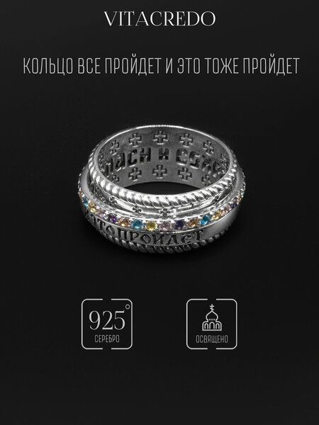 Православное кольцо серебро женское "Всё пройдёт и это тоже пройдёт" от VitaCredo - это уникальное ювелирное изделие, созданное с особым вниманием к деталям и качеству. Ещё в юности царю Соломону подарили кольцо и сказали: «Когда тебе будет тяжело, то возьми это кольцо». Спустя много лет был страшный неурожай, которому сопутствовали мор и голод. Умирали старики, женщины, мужчины и особенно дети. Царь Соломон решил продать все драгоценности, чтобы купить зерна. Случайно он увидел кольцо, на котором было написано: «Всё пройдёт, и это тоже пройдёт». Эти слова придали ему сил! Так и мы должны помнить, что в минуту отчаяния и смятения всегда есть надежда. Рано или поздно всё проходит! Всё пройдет – и печаль, и радость. Всё пройдет – так устроен свет. Всё пройдет – только верить надо, Что любовь не проходит, нет. Выбирая православное кольцо серебро женское "Всё пройдёт и это тоже пройдёт" от VitaCredo, вы получаете не только стильный аксессуар, но и символ веры и духовности.