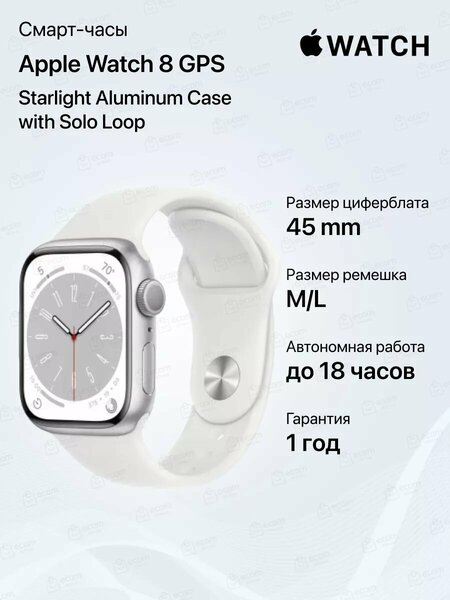 {"widgets":{"@card/UniversalPromoBadge":{"/content/page/fancyPage/universalPromoBadge":{"wrapperProps":{"margins":{"bottom":"3"}},"initialTime":1759398304213,"offerComposeId":"1768753760"}}},"meta":{"/content/page/fancyPage/universalPromoBadge":{"name":"@card/UniversalPromoBadge"}},"collections":{"productServiceSnippets":{"1768753760":{"productSnippet":{"type":"MODEL_CARD_LAYOUT","productPayload":{"title":{"value":"Часы Apple Watch 8 GPS Starlight Aluminum Case with Solo Loop 45mm, Корпус из алюминия цвета сияющая звезда , спортивный ремешок 45мм M/L"},"badges":{},"wishlistButton":{"mskuId":101828824844,"businessId":16870397,"modelId":1768753760,"oskuId":103187486281},"rating":{"reviewsCount":31,"ratingCountStats":{"cnt3":0,"cnt4":2,"cnt2":0,"cnt1":24,"cnt5":20},"ratingValue":2.9,"ratingCount":46},"gallery":{"galleryType":"MIXED","mediaItems":[{"type":"IMAGE","picture":{"height":1200,"width":900,"title":"Часы Apple Watch 8 GPS Starlight Aluminum Case with Solo Loop 45mm, Корпус из алюминия цвета сияющая звезда , спортивный ремешок 45мм M/L","baseUrl":"https://avatars.mds.yandex.net/get-mpic/15142316/2a00000196a90a5790b902dbe50fbe68a9f7/"}},{"type":"IMAGE","picture":{"height":1200,"width":900,"title":"Часы Apple Watch 8 GPS Starlight Aluminum Case with Solo Loop 45mm, Корпус из алюминия цвета сияющая звезда , спортивный ремешок 45мм M/L","baseUrl":"https://avatars.mds.yandex.net/get-mpic/15243415/2a00000196a8fbded71f1d2628679fd47069/"}},{"type":"IMAGE","picture":{"height":1200,"width":900,"title":"Часы Apple Watch 8 GPS Starlight Aluminum Case with Solo Loop 45mm, Корпус из алюминия цвета сияющая звезда , спортивный ремешок 45мм M/L","baseUrl":"https://avatars.mds.yandex.net/get-mpic/10229228/2a00000196a8fbdf7c797cb59ee93b1de363/"}},{"type":"IMAGE","picture":{"height":1200,"width":900,"title":"Часы Apple Watch 8 GPS Starlight Aluminum Case with Solo Loop 45mm, Корпус из алюминия цвета сияющая звезда , спортивный ремешок 45мм M/L","baseUrl":"https://avatars.mds.yandex.net/get-mpic/14331733/2a00000196a8fbd906fb2c9c96f23728116f/"}},{"type":"IMAGE","picture":{"height":1200,"width":900,"title":"Часы Apple Watch 8 GPS Starlight Aluminum Case with Solo Loop 45mm, Корпус из алюминия цвета сияющая звезда , спортивный ремешок 45мм M/L","baseUrl":"https://avatars.mds.yandex.net/get-mpic/10500364/2a00000196a8fbe441d656ab94e32009d290/"}},{"type":"IMAGE","picture":{"height":1200,"width":900,"title":"Часы Apple Watch 8 GPS Starlight Aluminum Case with Solo Loop 45mm, Корпус из алюминия цвета сияющая звезда , спортивный ремешок 45мм M/L","baseUrl":"https://avatars.mds.yandex.net/get-mpic/10231887/2a00000196a8fbe3976104f41f7d6e0b8850/"}},{"type":"IMAGE","picture":{"height":1200,"width":900,"title":"Часы Apple Watch 8 GPS Starlight Aluminum Case with Solo Loop 45mm, Корпус из алюминия цвета сияющая звезда , спортивный ремешок 45мм M/L","baseUrl":"https://avatars.mds.yandex.net/get-mpic/15199947/2a00000196a8fbe405bedc09c011502012ec/"}},{"type":"IMAGE","picture":{"height":1200,"width":900,"title":"Часы Apple Watch 8 GPS Starlight Aluminum Case with Solo Loop 45mm, Корпус из алюминия цвета сияющая звезда , спортивный ремешок 45мм M/L","baseUrl":"https://avatars.mds.yandex.net/get-mpic/16115889/2a00000196a8fbde7670697f332a5ad595f4/"}},{"type":"IMAGE","picture":{"height":1200,"width":900,"title":"Часы Apple Watch 8 GPS Starlight Aluminum Case with Solo Loop 45mm, Корпус из алюминия цвета сияющая звезда , спортивный ремешок 45мм M/L","baseUrl":"https://avatars.mds.yandex.net/get-mpic/15256585/2a00000196a90a5790770ee5448a7a892d95/"}},{"type":"IMAGE","picture":{"height":1200,"width":900,"title":"Часы Apple Watch 8 GPS Starlight Aluminum Case with Solo Loop 45mm, Корпус из алюминия цвета сияющая звезда , спортивный ремешок 45мм M/L","baseUrl":"https://avatars.mds.yandex.net/get-mpic/15280394/2a00000196a90a575330fa42912ebb186143/"}},{"type":"IMAGE","picture":{"height":1200,"width":900,"title":"Часы Apple Watch 8 GPS Starlight Aluminum Case with Solo Loop 45mm, Корпус из алюминия цвета сияющая звезда , спортивный ремешок 45мм M/L","baseUrl":"https://avatars.mds.yandex.net/get-mpic/12841286/2a00000196a90a59723da5ccdddd7e520de3/"}},{"type":"IMAGE","picture":{"height":1200,"width":900,"title":"Часы Apple Watch 8 GPS Starlight Aluminum Case with Solo Loop 45mm, Корпус из алюминия цвета сияющая звезда , спортивный ремешок 45мм M/L","baseUrl":"https://avatars.mds.yandex.net/get-mpic/11462999/2a00000197ca2286ded69bf88c6fb28ca751/"}},{"type":"VIDEO","video":{"title":"Часы Apple Watch 8 GPS Starlight Aluminum Case with Solo Loop 45mm, Корпус из алюминия цвета сияющая звезда , спортивный ремешок 45мм M/L","streams":[{"url":"https://strm.yandex.ru/vod/vh-market-upload-converted/vod-content/2056147727772556269/0aa934f4-0ba4-4a37-a017-849b09c8f8d5/kaltura/desc_e079d8fc521213eedcd20d8a3eb5310b/2866791218802978480/ysign1=85185b5f8c1836aa500e6d65a3597fd06c355fda12aca8bf322cab141a6bc533,abcID=1632,from=unknown,pfx,sfx,ts=68eb78a0/manifest.mpd","type":"dash"},{"url":"https://strm.yandex.ru/vod/vh-market-upload-converted/vod-content/2056147727772556269/0aa934f4-0ba4-4a37-a017-849b09c8f8d5/kaltura/desc_e079d8fc521213eedcd20d8a3eb5310b/2866791218802978480