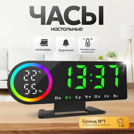 Настольные электронные часы с измерением температуры это идеальный аксессуар для вашего дома или рабочего пространства. Широкий экран с четкими и яркими цифрами способствует легкому восприятию информации. Высококачественная сборка, стильный и современный дизайн настольных часов не оставят Вас равнодушными. Особенностью данной модели является отображение дня недели, что значительно упрощает планирование и контроль за делами. Каждый день вы можете моментально узнать, какой именно сегодня день, не открывая календарь. Часы оснащены громким будильником, который гарантирует, что вы не проспите важные моменты вашего дня. Часы оснащены встроенным гигрометром и измерителем температуры, что становится настоящим спасением для заботливых хозяев. Теперь вы можете следить за климатом в помещении, получая актуальную информацию о температуре и влажности воздуха. Также эта модель электронных часов Все эти данные удобно отображаются на широком экране с ярким циферблатом, что обеспечивает отличную видимость даже с дальнего расстояния. Настольные электронные часы имеют функцию автоматической яркости, которая подстраивается под условия окружающего света. Например, в темное время суток яркость дисплея уменьшается, что не вызывает дискомфорта для глаз. Дополнительной уникальной особенностью являются мигающие точки, которые могут служить не только декоративным элементом, но и функциональным индикатором. Это придает часам интерактивность и стильный внешний вид. Эти небольшие световые эффекты делают часы более привлекательными и оживляют поверхность, на которой они стоят. Часы обладают широким экраном с четкими и яркими арабскими цифрами, что облегчает восприятие информации. Использование 24-часового формата делает их универсальными для любых пользователей, включая тех, кто предпочитает 12-часовой формат. Размер цифр продуман так, что их можно легко увидеть с расстояния, не напрягая глаза. Питание устройства осуществляется от сети, что гарантирует стабильную работу и точность времени. Встроенная батарейка предназначена для сохранения всех настроек в случае отключения электроэнергии, обеспечивая непрерывную и надежную работу часов. Также есть возможность зарядки телефона через USB вход. Эти часы идеально подходят для спальни, офиса или гостиной благодаря своему компактному размеру 15 см в длину и 7 см в высоту, позволяя разместить их где угодно без излишнего громоздкости. Элегантный стильный дизайн в гармоничном черном корпусе придаёт современный вид любому интерьеру. Большие удобные кнопки делают настройку простым и интуитивно понятным процессом. Современные настольные часы отлично впишутся в любой интерьер, будь то классический или минималистичный стиль. Они не только удобно отображают время, но и помогают следить за микроклиматом в помещении, что делает их незаменимыми в повседневной жизни. Наши настольные часы пользуются огромной популярностью у покупателей благодаря своему качеству и функциональности. Большинство отзывов о нашем продукте положительные. Покупатели особенно отмечают стильный дизайн, компактные размеры, надежность и удобство использования. Они также ценят точность хода и практичность устройства, которое работает от сети с резервной батарейкой для сохранения настроек.
