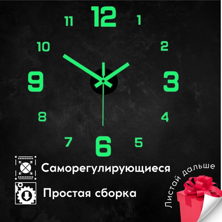 Необычные настенные часы GLAMO с 3D - циферблатом станут украшением интерьера. Они не только станут стильным дополнением к вашему дому, но и будут служить вам верой и правдой, обеспечивая точное время. Часы GLAMO выполнены в зеленом цвете, который добавит яркости и свежести в ваш интерьер. Диаметр часов составляет 100 мм, что делает их заметными, но не слишком большими. Особенностью этих часов является их бесшумный кварцевый механизм, который обеспечивает плавный ход стрелок во время работы и тишину в любое время суток. Поэтому их можно спокойно повесить в спальной комнате взрослых или в детской комнате детей. А крупный циферблат смогут издалека увидеть люди пожилого возраста. GLAMO - это не просто часы, это еще и декор. Они имеют эффект 3D, что придает им объем и глубину. Они оснащены арабскими цифрами и секундной стрелкой, что делает их удобными для использования. Поверхность для установки часов может быть любой: как шероховатой, так и гладкой, рельефной, деревянной. В комплекте с кухонными интерьерными часами идет трафарет для удобной разметки стены и наклейки элементов. С его помощью получится правильно разместить части циферблата и стрелки. Элементы часов изготовлены из высокоглянцевого акрилового пластика (внимание! для сохранности на элементах нанесена защитная пленка, которую необходимо снять после установки). На обратной стороне элементов приклеена вспененная основа с клеящим слоем. Вам остается только расположить часы с плавным ходом на стене. В целом, настенные часы GLAMO - это сочетание стиля, функциональности и качества. Они станут отличным выбором для тех, кто ценит комфорт и уют в своем доме. Оригинальные часы в стиле лофт станут отличным подарком женщине, девочке, подростку, мужчине, папе, коллеге, девушке, парню, маме, бабушке на любой праздник: Новый год, Рождество, женский праздник 8 марта, юбилей, день рождения, свадьбу.
