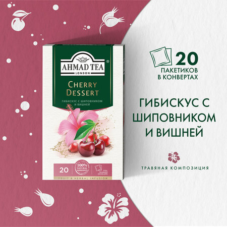 Чай Ahmad Tea "Черри Десерт", травяной со вкусом и ароматом вишни и шиповника, 20 пакетиков