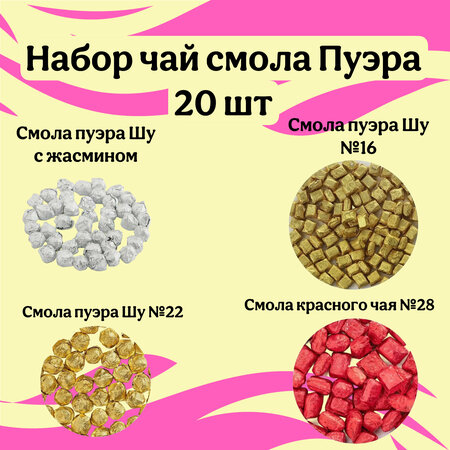 "Набор смолы №2", 20шт, Смола пуэра Шу с Жасмином, Смола пуэр Шу №16, Смола красного чая №28, Смола пуэра Шу №22