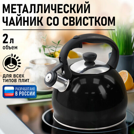 Со свистком, объем 2 л, нерж. сталь, диаметр дна 16.5 см, неподвижная ручка, подходит для электрических, газовых, индукционных плит. Назначение: для домашнего использования. Крышка в комплекте, материал крышки пластик-нержавеющая сталь. Материал ручки пластик, вид ручки поворотная, можно мыть в посудомоечной машине. Чайник металлический со свистком это один из самых необходимых элементов любого чаепития. Объем позволит Вам за один раз вскипятить воду на большую компанию друзей. Выполнен в форме полусферы из высококачественной нержавеющей стали, с эргономичной не нагревающейся ручкой, которую удобно держать в руке, и продуманным дизайном и конструкцией носика со свистком. Крышка отсека для залива воды удобно открывается и закрывается одним движением. Отличительная особенность такого чайник состоит в том, что у него есть свисток, который в момент закипания подает сигнал, что вода готова! Свист обычно пронзительный настолько, что его сложно не услышать. Пар проходит сквозь свисток и прибор издает звук. Как только чайник снимают с плиты или просто выключают газ, давление падает и свист постепенно стихает. При нагревании такой металл не выделяет вредные вещества, а также не портит вкус воды. Товары для кухни! Чайник со свиством, чайник металлический, на плиту. Приготовление блюд с использованием кухонная техника наших брендов сделает ваши рецепты вкусными и полезными! Девайсы для кухни, необычайно полезный прибор для вкусного и здорового питания. Приготовление напитков для дачи, чайник удобный гаджет для приготовления вкусной и здоровой пищи для похудения.