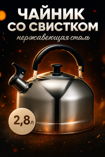 Чайник со свистком "Семейный" 2,8 л - Это незаменимый помощник на вашей кухне. Изготовленный из нержавеющей стали, он обеспечивает долговечность и надежность, а также быстрый нагрев воды и сохранение ее высокой температуры. В отличие от электрического чайника, чайник со свистком вы сможете спокойно взять на охоту, рыбалку, а также использовать в походе и на газовой плите.
