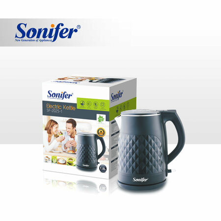 Электрический чайник Sonifer SF-2025-1: стиль и функциональность Современный дизайн и качественные материалы Чайник Sonifer SF-2025-1 выполнен в стильном черном цвете, который легко впишется в любой интерьер кухни. Корпус устройства изготовлен из комбинации металла и пластика, что обеспечивает прочность и долговечность конструкции. Высокая мощность и быстрый нагрев Мощность чайника составляет 1850 Вт, что позволяет ему быстро нагревать воду до нужной температуры. Объем чайника составляет 1,8 литра, что достаточно для приготовления напитков для всей семьи. Безопасность и удобство использования Одной из особенностей чайника Sonifer SF-2025-1 является блокировка включения без воды. Это обеспечивает безопасность использования устройства и предотвращает его перегрев. Продуманная конструкция и покрытие нагревательного элемента Покрытие нагревательного элемента выполнено из нержавеющей стали, что гарантирует долгий срок службы и сохранение вкуса и аромата воды. Выбирая электрический чайник Sonifer SF-2025-1, вы получаете стильный, функциональный и безопасный прибор для быстрого и удобного приготовления горячих напитков.