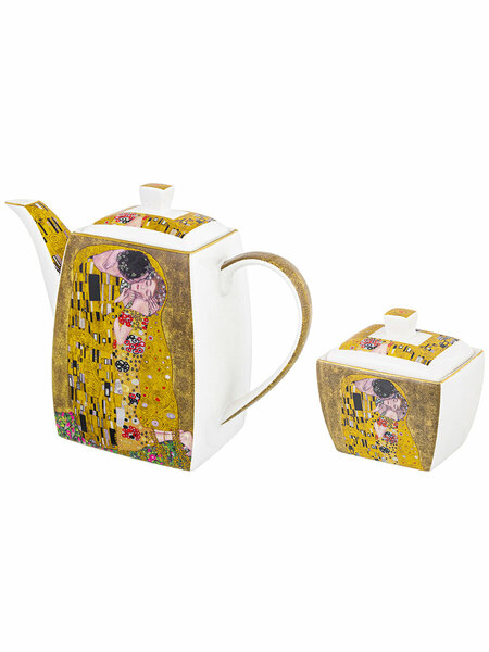 Чайный сервиз серии "Поцелуй" состоит из 2-х предметов: чайник заварочный английский 1,1 литра и сахарница 300 мл с крышкой. Чайник для заварки имеет ситечко в носике: фильтр не пропустит чаинок! Сахарницу можно использовать как баночку с крышкой для меда, варенья или специй. Посуда выполнена из высококачественного фарфора New Bone China. Фарфоровая посуда отличается от керамики повышенной плотностью. Фарфор не впитывает цвет продуктов и не деформируется от влаги, чему может быть подвержена керамическая посуда. Заварной чайник подходит для чайной свечи. Набор не подходит для использования на плите, в СВЧ и ПММ. Размер чайника 23,5*10*18,5 см, сахарницы - 10*8*10 см. Набор для чая поставляется в стильных картонных упаковках и сможет стать приятным подарочным набором для ваших родных и близких. Набор из серии "Поцелуй" украсит кухню и поможет провести множество уютных вечеров с любимыми напитками.