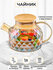 Комментарий: Давно искала стеклянный чайник с полосками большого объёма, чтобы заваренный в нём чай не разводить кипятком, а сразу наливать и пить. Докупили к нему поставку для подогрева, чтобы чай не остывал во время чаепития.