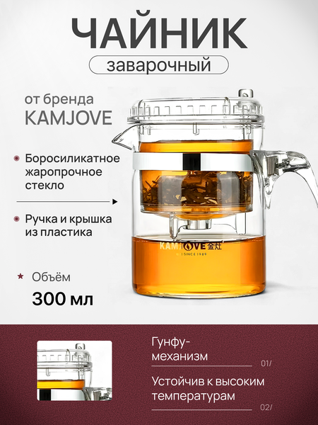 Представляем вам чайник заварочный гунфу типот Kamjove TP-140 из боросиликатного стекла - идеальный выбор для ценителей чая и уюта в доме. Этот стильный и функциональный набор станет незаменимым аксессуаром на вашей домашней или рабочей кухне, добавляя нотку изысканности и комфорта. Изготовленный из высококачественного боросиликатного жаропрочного стекла, маленький чайник Kamjove TP-140 обладает прочностью и устойчивостью к высоким температурам, что делает его идеальным для заваривания различных видов чая. Прозрачный дизайн позволяет наблюдать за процессом заваривания, создавая атмосферу настоящей чайной церемонии прямо у вас дома или в офисе. Удобная кнопка на крышке позволяет легко контролировать процесс заваривания, а встроенный фильтр с ситом из нержавеющей стали обеспечивает идеальную заварку без посторонних частиц. Благодаря жаропрочному стеклу и удобной ручке чайник Kamjove TP-140 станет надежным помощником на долгие годы. Чайник Kamjove TP-140 не только функционален, но и привлекателен своим элегантным дизайном. Он имеет объём 300 мл, поэтому станет отличным подарком для настоящих ценителей чая и уютных чаепитий. Позвольте себе насладиться ароматом свежесваренного чая с чайником Kamjove TP-140 - и каждый день станет особенным! Из интересного и особенного: в отличие от привычного формата колбы заварочного чайника, в этой модели можно снять крышку и промыть колбу отдельно, что даёт дополнительное преимущество в выборе.