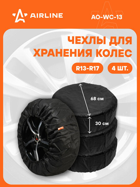 Чехлы для колес, размер R 13-17", без ручек, спанбонд, комплект 4 шт, цвет черный Описание: Предназначены для хранения и транспортировки запасного комплекта колес или шин. Сохраняют от механических повреждений, а также предотвращают влияние на них таких факторов, как влага, промерзание или непрерывное попадание прямых солнечных лучей. Набор укомплектован 4-мя чехлами изготовленных из спанбонда, который отлично пропускает воздух, благодаря чему шины не будут преть, а диски ржаветь. За счет вшитой по периметру резинки чехлы плотно облегают колесо и одеваются за считанные секунды. Характеристики: Артикул: AO-WC-13 Диаметр, см: 68 Диаметр совместимости колес, дюйм, от: 13 Диаметр совместимости колес, дюйм, до: 16 Ширина, см: 30 Крепление: Вшитая резинка по окружности Плотность материала, г/м2: 100 Комплектация: Чехлы на колеса-4 шт. ПЭ пакет-1 шт. Гарантия: от 1 года.